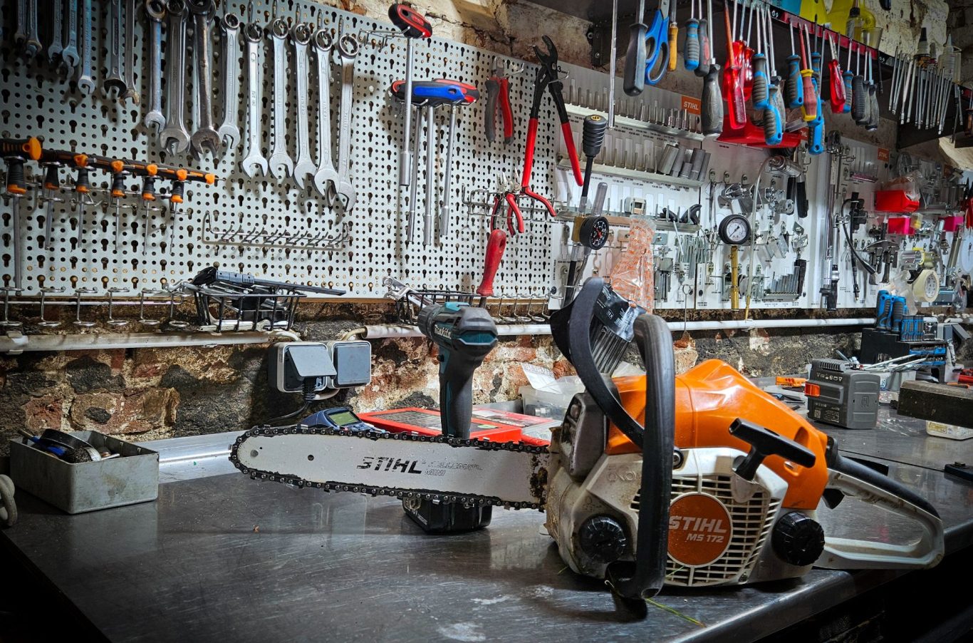 Wir bieten außerdem Dienstleistungen wie: Messerschärfen für Rasenmäher und Mähroboter, Kettenschärfen für Motorsägen, Reinigungsservice für Ihre Maschinen, Winter- und Frühjahrsservice, Schärfen von Heckenscheren und weiteren Astklingen, Einstellung und Kallibrierung von Motoren.